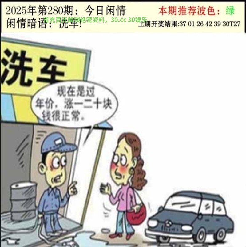 280期闲情暗语:【洗车】 解释:解多金肖猴鸡狗猪龙马羊 解六肖:鼠马虎猴猪狗 开:鼠42准 |
